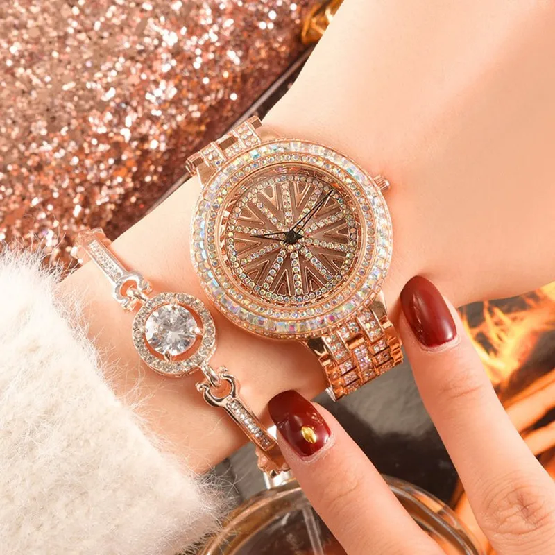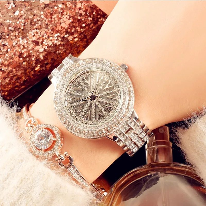 Authentic Goddess Waterproof Rotating Quartz Tide Watch Green Multi-layer Inlaid Watch Stylish Stee