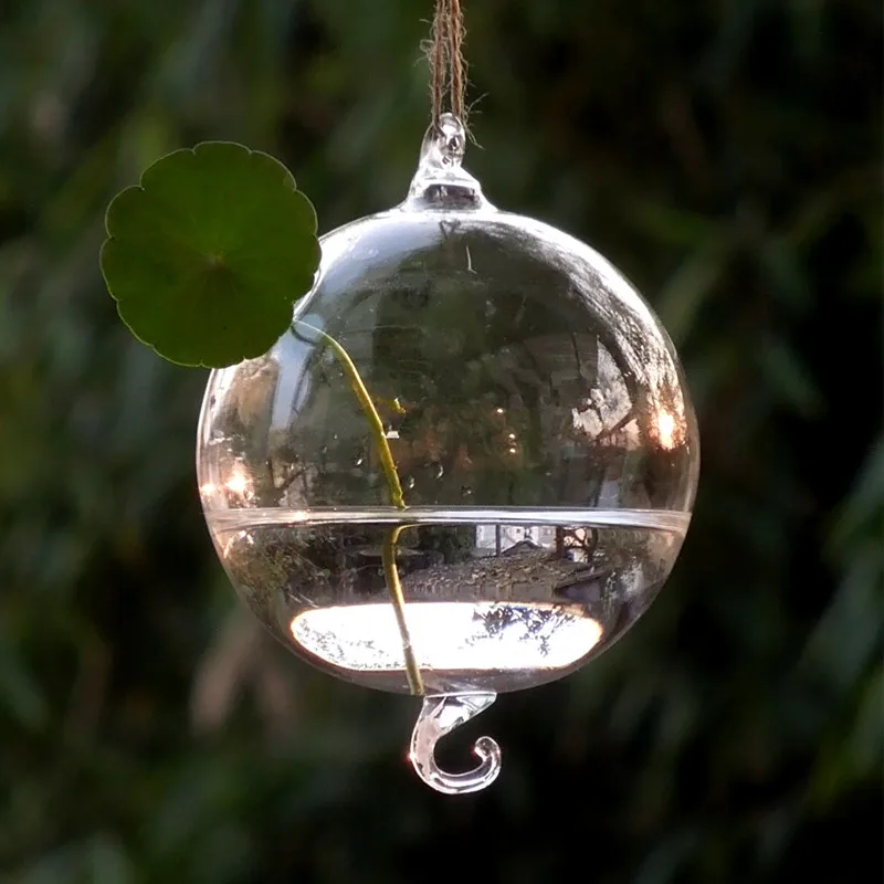 Best Diameter = 8cm 10cm Big Packing Double Hock Glass Globe Vase Terrarium with Small Hole Wedding Hang