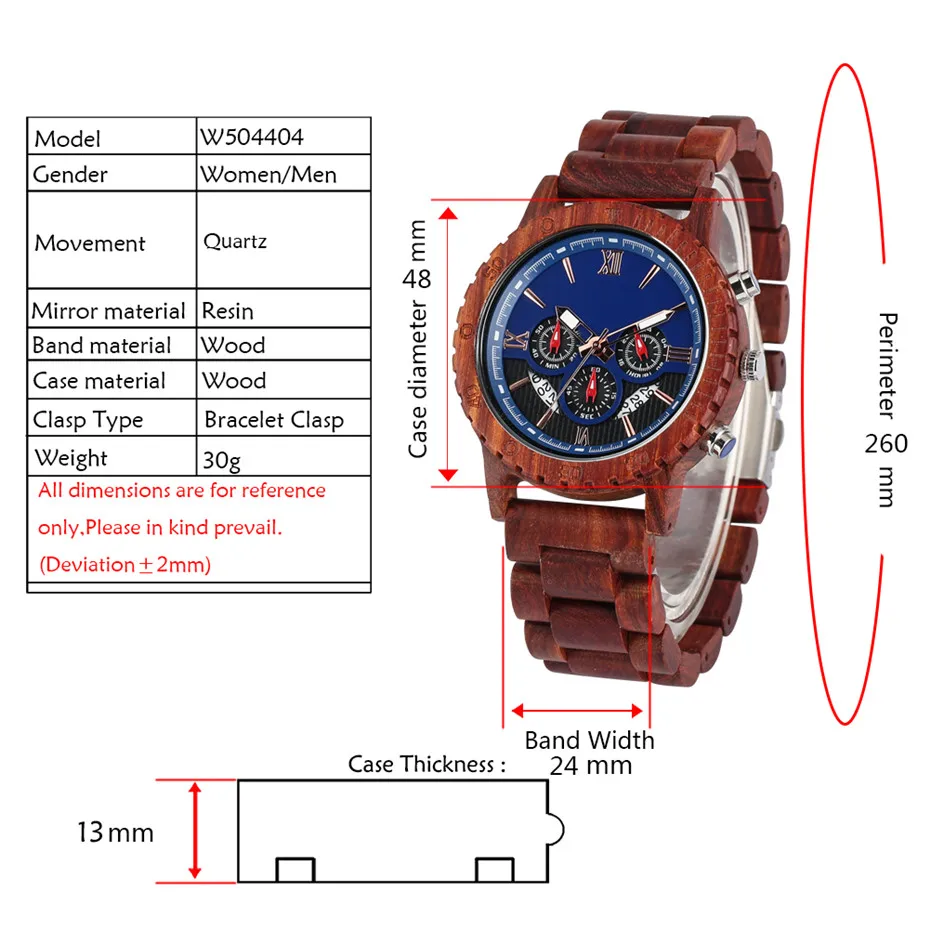 REVIEW TOP SELLER Sport Men's Watch Chronograph Calendar Male Timepiece Quartz Movement Luxury Red Wooden Watch Case