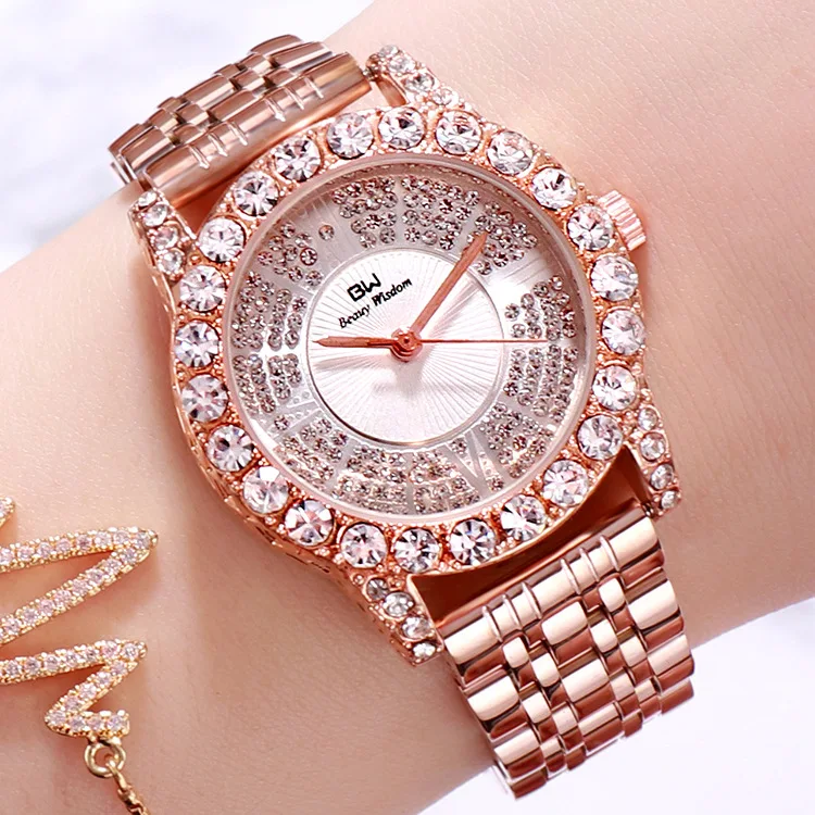 BEST QUALITY Gypsophila full diamond watch female fashion Roman female watch steel with butterfly buckle quartz