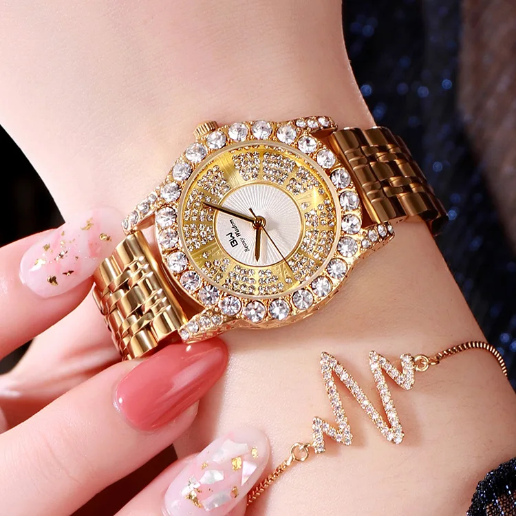 Gypsophila full diamond watch female fashion Roman female watch steel with butterfly buckle quartz