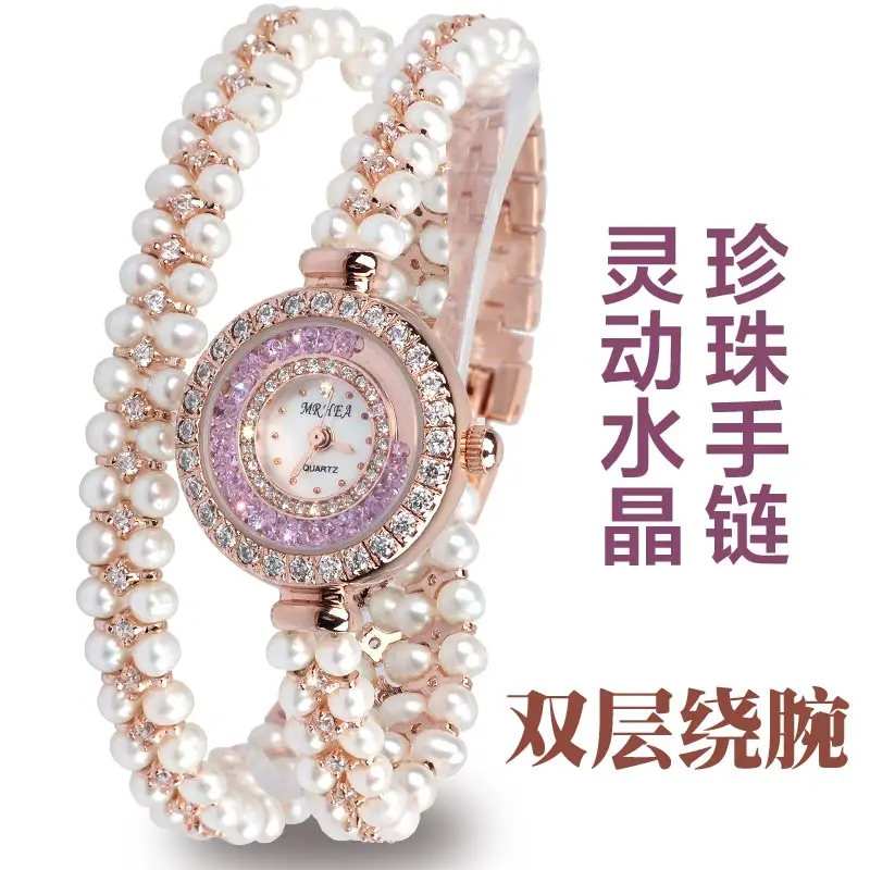 TOP Authentic pearl winding multi-ring diamond women's fashion fashion table quicksand crystal watch di